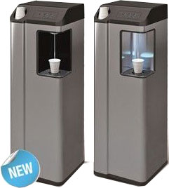 Die Gehäuse enthalten CO2-Flasche und Karbonator. Sie sind in Ausführungen mit gekühltem Wasser und Sodawasser sowie zusätzlich mit Heißwasser lieferbar.