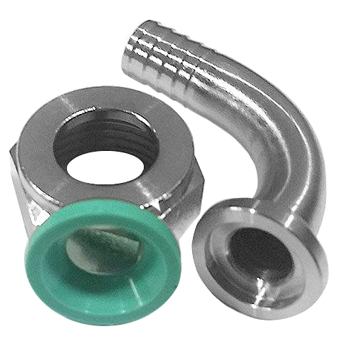 TDS® VA-Verschraubung, Tülle gebogen+Dichtung (grün)+Mutter